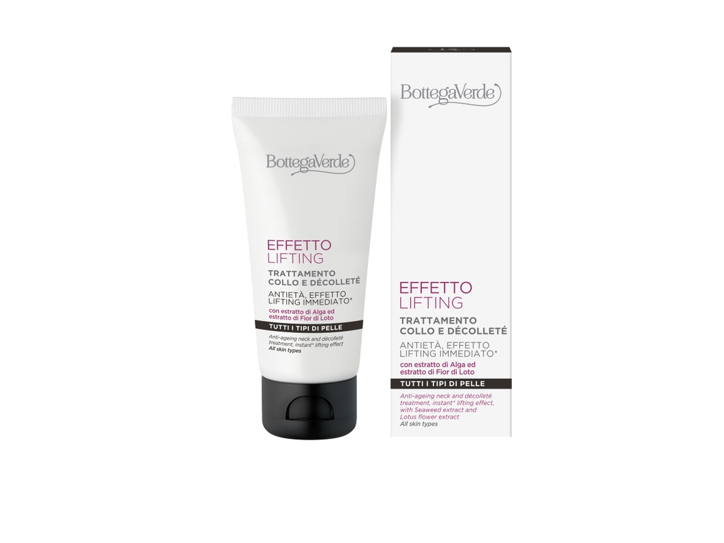 Vùng da cổ và ngực mỏng manh thường là nơi sớm lộ rõ dấu hiệu lão hóa: nếp nhăn ngang cổ, da chảy xệ và mất đi độ đàn hồi. Effetto Lifting Trattamento Collo e Décolleté là kem dưỡng da vùng cổ và ngực giúp dưỡng da mềm mịn, giúp dưỡng ẩm cho da, giúp hỗ trợ làm săn chắc da.