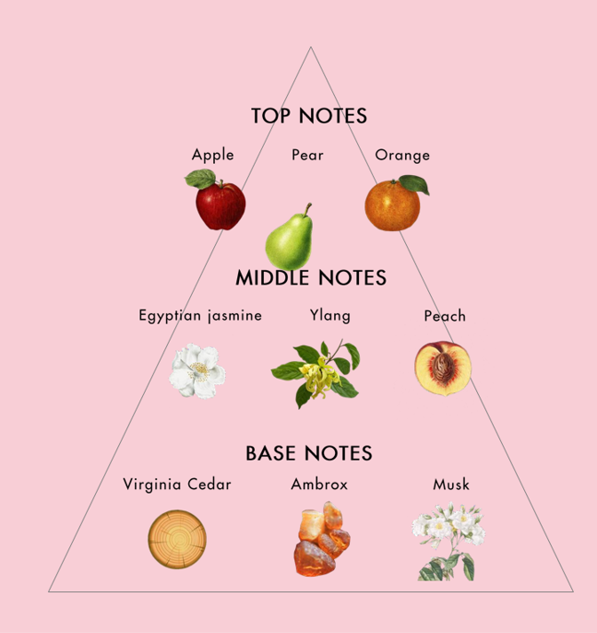 • Hương giữa: Hoa nhài, Ylang, Quả đào